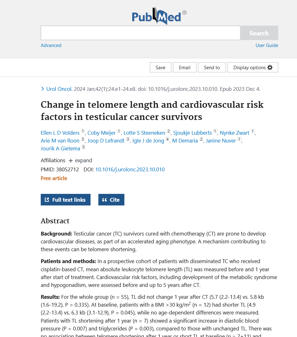 ๐ Title: โChange in telomere length and cardiovascular risk factors in testicular cancer survivors.โ